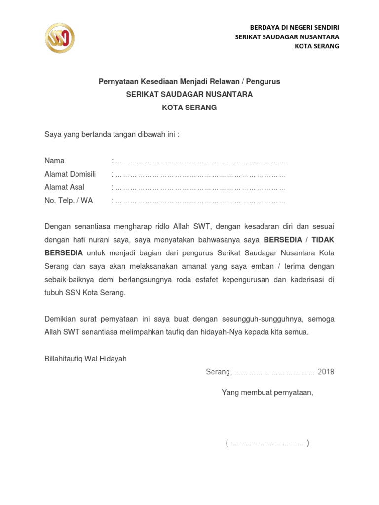 Sehubungan dengan diterimanya di organisasi siswa intra sekolah yang berdasarkan dengan hasil test seleksi interview masuk kepengurusan organisasi siswa intra sekolah (osis) smk sultan fattah demak yang dilaksanakan pada tanggal 11 nopember 2016, maka dengan ini saya yang bertandatangan di bawah ini : Surat pernyataan merupakan bagian dari proses surat menyurat dari perusahaan atau perseorangan. Contoh surat pernyataan akan admin share buat sobat mengenai surat pernyataan tergantung kasusnya juga seperti contoh surat kuasa bisa dari surat pernyataan mulai kerja, kesanggupan hutang, diri, belum menikah, kehilangan, pelunasan hutang, tidak bekerja, diri, pengunduran diri, hibah, belum memiliki rumah, tidak terikat dengan instansi lain. Yayasan mempunyai organ yang terdiri atas pembina, pengurus dan pengawas. Informasi yang disaikan caleg partai ke kpu. Dan biasanya yang akan mengeluarkan suratnya adalah kepala sekolah yang bersangkutan. Pada zaman serba modern ini manusia semakin mudah lupa. Contoh surat pernyataan yang baik sering digunakan sebagai acuan atau pedoman dalam melakukan pembuatan surat. Surat ini dibuat oleh seseorang yang telah melakukan perjanjian yang mempunyai kekuatan hukum, misalnya sewa rumah. Surat pernyataan tidak menjadi anggota atau pengurus parpol. Beberapa contoh surat pernyataan menjadi pengurus yayasan terbaru 2019. Surat pernyataan ini digunakan saat seseorang diminta untuk tidak menikah selama bertugas. Contoh surat pernyataan kesanggupan dalam berbagai kasus dan.